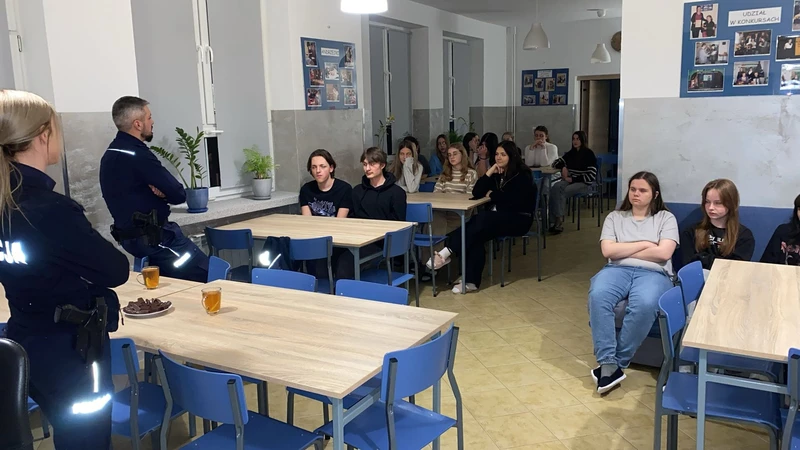 Dnia 20 listopada 2025 roku w naszej szkole odbyło się wyjątkowe spotkanie z policjantem oraz specjalistą z Komendy Powiatowej Policji w Bochni – Panem Michałem Bajdą. Tematem spotkania były konsekwencje prawne przemocy oraz hejtu, szczególnie w przestrzeni internetowej, z którą młodzi ludzie mają styczność na co dzień.
