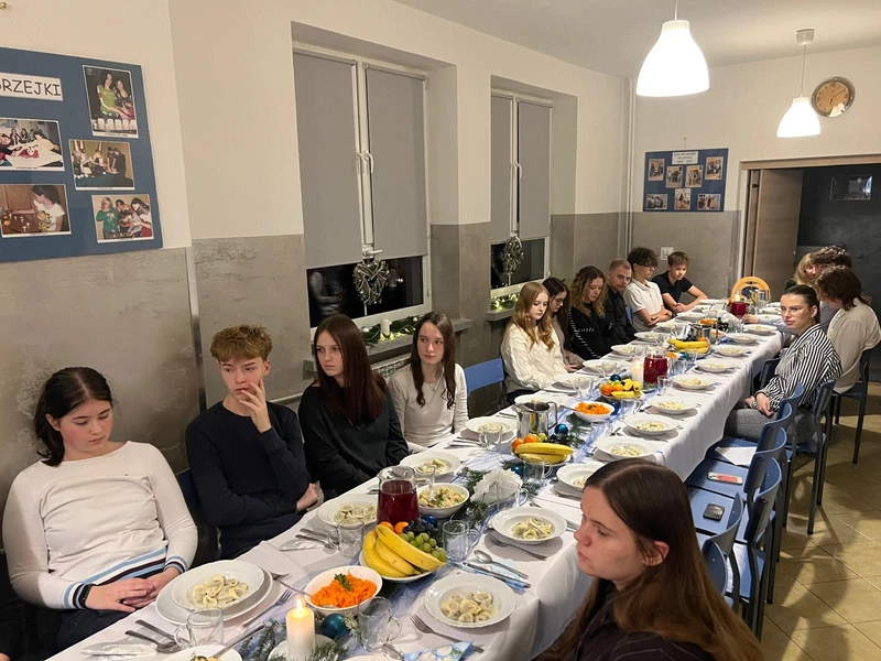 W dniu 17.12.2025r w bursie odbyła się uroczysta Kolacja Wigilijna nawiązująca do staropolskich tradycji. Przy świątecznie udekorowanych stołach, przy blasku świec wychowankowie, pracownicy naszej placówki oraz zaproszeni goście spożywali potrawy wigilijne, śpiewali kolędy oraz składali sobie życzenia dzieląc się opłatkiem. Wieczór przebiegł w atmosferze skupienia, życzliwości i szacunku do polskiego dziedzictwa kulturowego.
